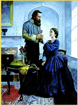 Maj. Gen. J.E.B. Stuart bids farewell to his wife, Flora, before embarking