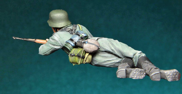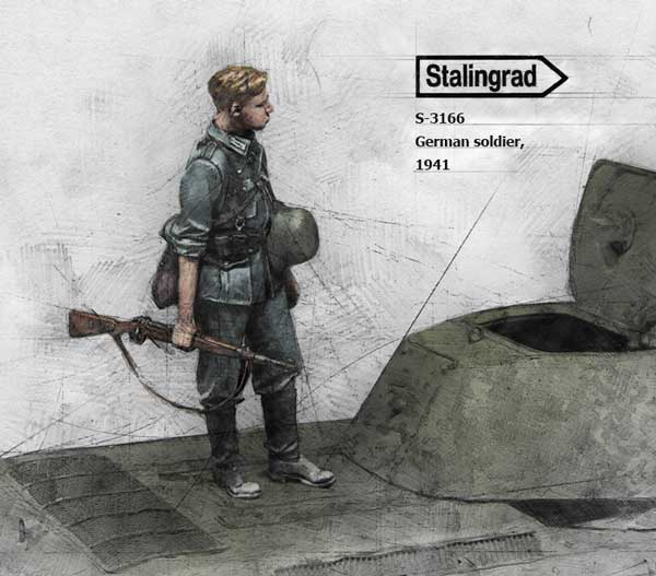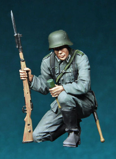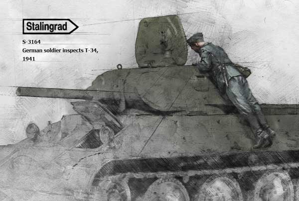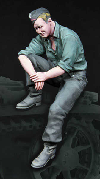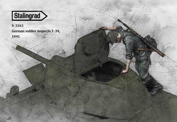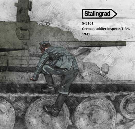 German soldier inspecting T-34 1/35 scale resin kit |