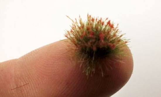 from the balls of grass & attach to figure base with white glue or