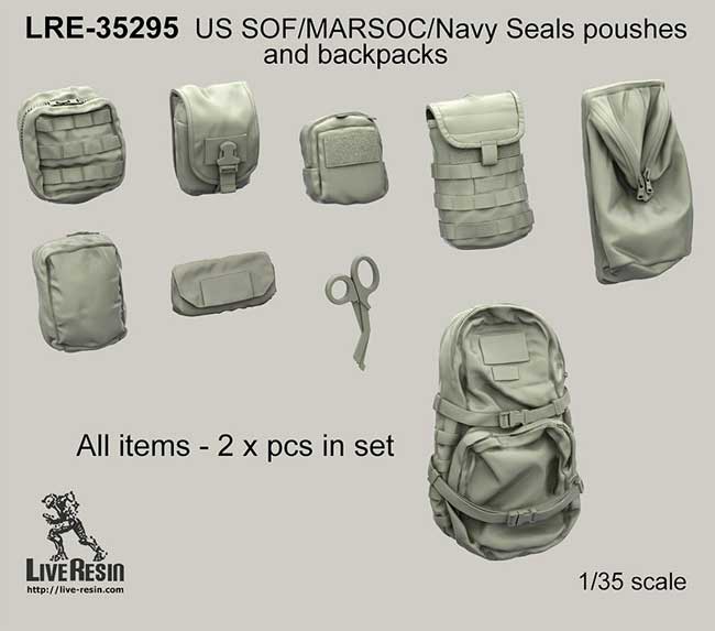 US SOF/MARSOC/Navy Seals pouches and backpacks 1/35 scale