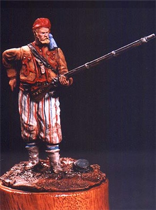 MM-F54-15 Louisiana Zouave (Coppen's Tiger Zouaves 1st Louisiana Infantry Battalion) holding musket, 54-mm scale metal kit. $21.99