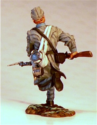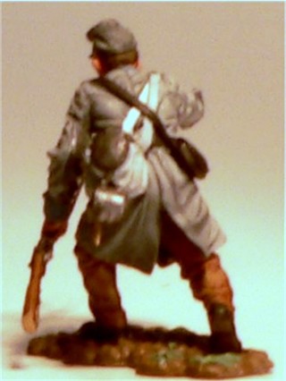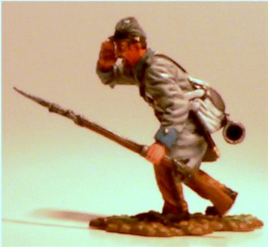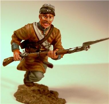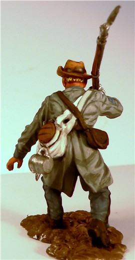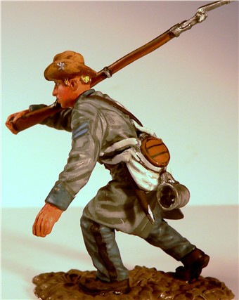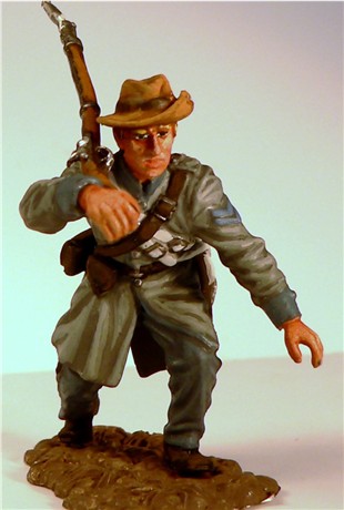 MMW54131 Confederate infantry, charging, musket shoulder arms, wearing Mexican War forage cap,  1st Texas Brigade 1862.  Cast in 54-mm scale lead free pewter.  Includes 1841 Mississippi musket.  Photo depicts figure painted by George Nieto. $14.99