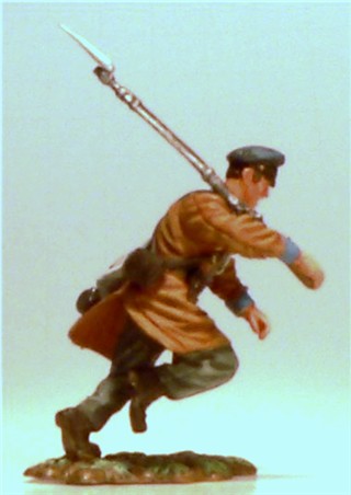 MMW54133 Confederate infantry, charging, musket at ready, 1st Texas Brigade 1862.  Cast in 54-mm scale lead free pewter.  Includes 1841 Mississippi musket.  Photo depicts figure painted by George Nieto.