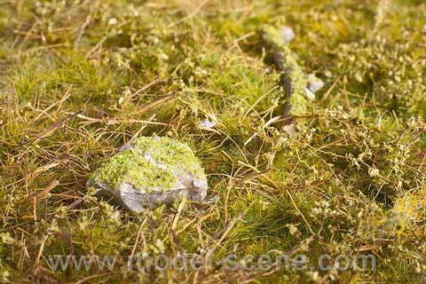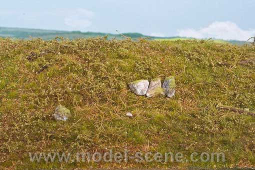 Instructions for using Model Scene Grass Mats: Extremely easy to use! 1) The base for gluing the mats should be dust & grease-free. It is recommended to paint the base a similar color to grass mat, preferably using earth tones. The mats are somewhat transparent, and the underlying base can show through the mat. 2) The mat can be cut or torn to desired size & shape. The bottom (underneath) of the mat should be lightly sprayed with water (or apply water with paint brush). Wait about a minute to allow the water to dampen the grass foliage. 3) Glue is then applied to base. Virtually any glue will work, such as white glue. The glue should be applied with a paint brush, or sprayed on the base, making sure no glue puddles are created. The base can be uneven. 4) The wet foliage is then affixed to the base by gently pressing the grass foliage into place, allowing the foliage to take on the same shape as the base. Allow to dry, and then apply other foliage plant growth products (such as weeds) to achieve the ultimate in realistic scenery! |