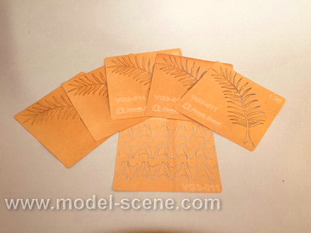 Various jungle plants made on photo-etched paper. Works well to create a natural appearance to virtually any figure base, vignette, or diorama. Ideal for 1/35 & 54 mm scale.