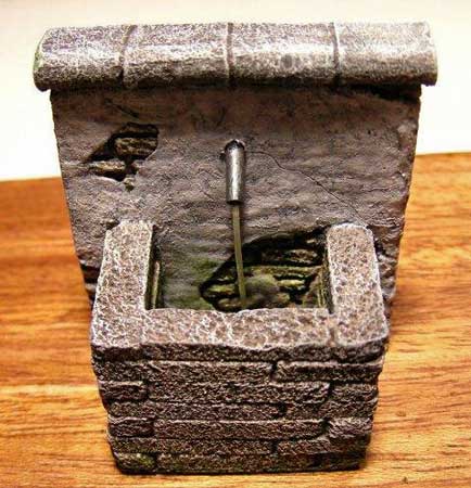 important source of water. This miniature well reflects a rough stone