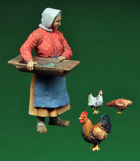 Russian old woman and hens (contains 3 hens & figure) 1/35