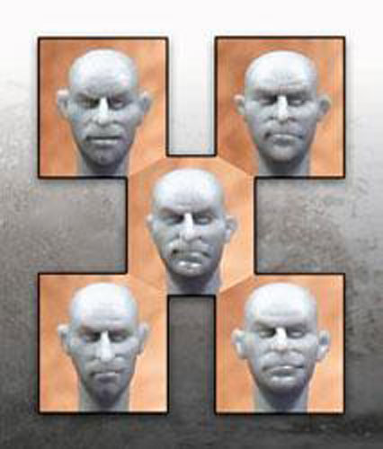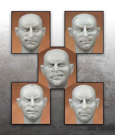BOD35017 Bald head set, contains 5 heads frowning, 1/35 scale resin kit, sculpted by Krisztian Bodi.  $12.99