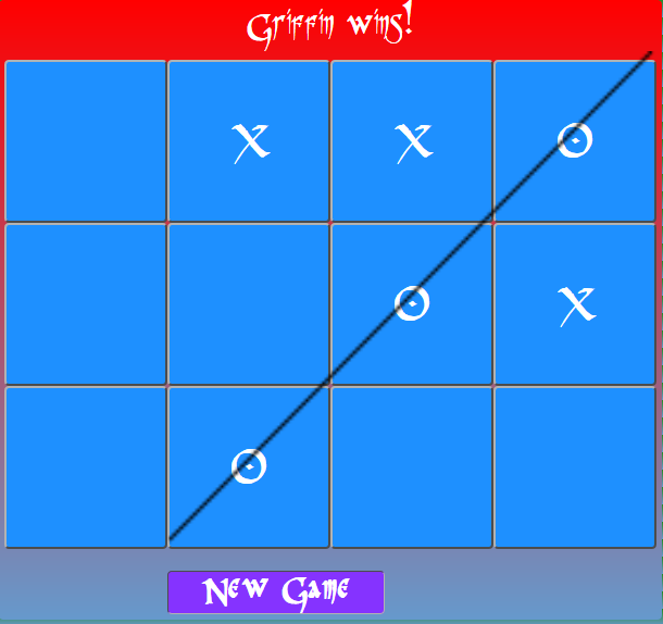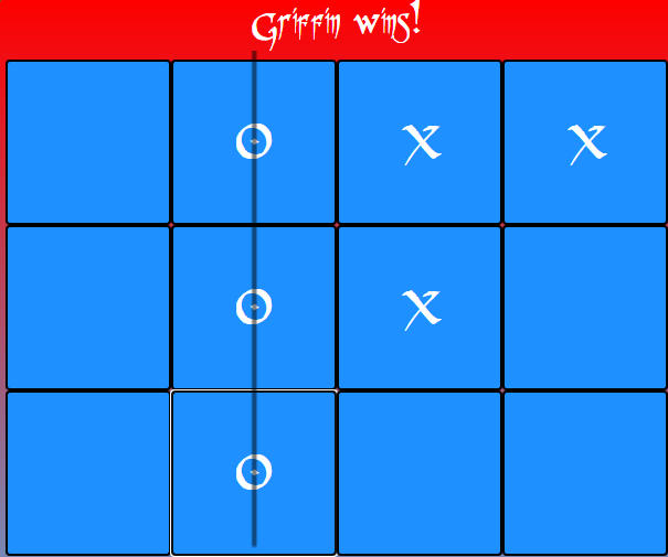 The game begins with Griffin making his mark (X) first. The object of the game is NOT to place