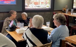 Marleen Swanson, Marjorie Burden Gray. Marji Speece Nash talking to Georgia Schadegg Ballard (spouse). Rita Winkley next to Georgia.