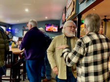 (F) Pam Foster Speka talking to Jim Manning (?); (B) Vern Elijah, Rhonda Fogleman McDonnell, and Sandy Bell (?) standing behind Rhonda.