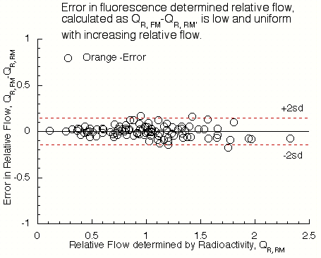 Correlation between relative flows determined by radioactivity and fluorescence