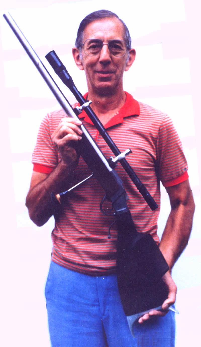 Ed Yost with his first completed prototype Single Shot Schuetzen Rifle in 22 rimfire caliber. 1985