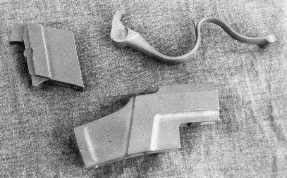 Finally, the forth contact agreed to look at my molds and recommend slight changes to suit their equipment and after I agreed to pay up-front money to cover first run set up charges would run parts for me. So, 28-30 each of the three major parts were cast during the early spring of ‘88’. These were of good quality but still required straightening of the lever and receiver due to shrinkage and slight distortion.