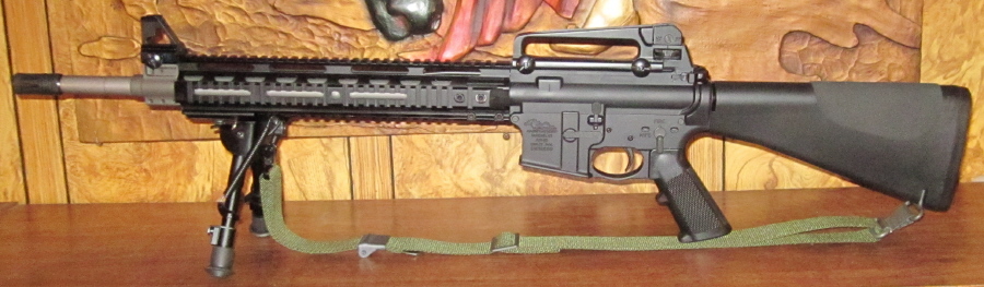 A very sturdily and inexpensive Gun Broker 12.5" free float handguard item #898609929 was used. Some work was required for setup and time the beefy steel barrel nut with handguard alignment. The provided handguard attachment screws were too long and will dig into the barrel if not shortened. Six suitable size steel washers were shaped to fit the openings for the handguard attachment screws. Failure to include washers can cause the tightened Allen Heads to gradually sink into the aluminum and contact the barrel. Screws will have to be shortened some to avoid contact with the barrel. Verifying screw protrusion is easier with the barrel nut in the handguard prior to installation.