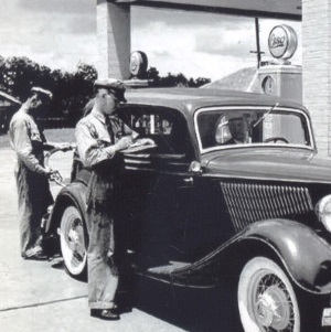 In the 1930's filling your car at an Esso Gas Station in Palestine Texas was a full-service experience where two uniformed attendants filled your car with gas, checked your tires, tires, washed your windshield and swept out your floorboard. |