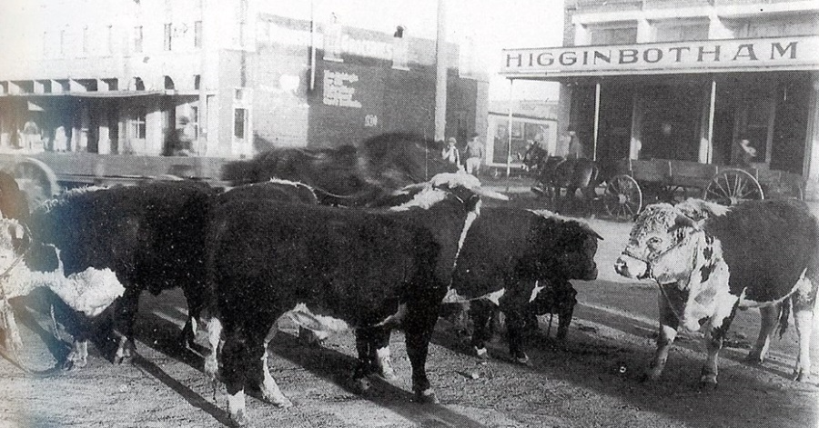 Cattle in Downtown Stephenville in 1911