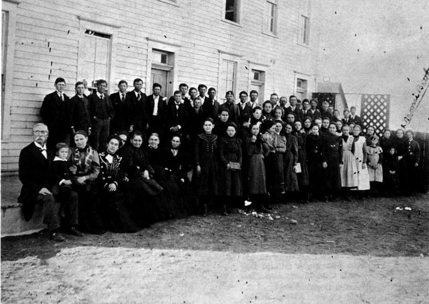 Students: John McDonald, Herbert Jones, Joe Kesterson, D. Vaugher, Roy Vineyard, John Mackelhaney, Charley McClaren, Bess and Clyde Norvell, Ella and Minnie Dyer, Bill and Maggie Burns, Georgie Caperton, Rela and Annie Vaughn, Flora Hunter, Lou Goodnight, Minnie Campbell, Stella and Annie Traweek, Pearl Vineyard, May Jackson, Nell Mackelhaney, Lenna Doke, Daisy Martain. Teachers: Mr. Mackelhaney, Maude Glenn, Mrs. Warner and Mrs. Martain |