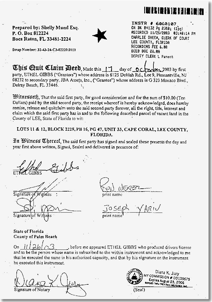 Notaries Caught in Middle Attorney Ira Silver says he has no idea how his notary stamp ended up on a fake deed filed in Lee County by a firm called Zubrick Inc.
