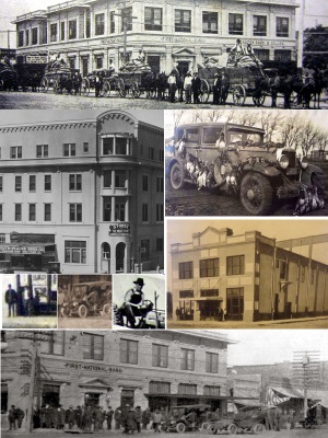 Corner of North Pacific Street, Plainview TX 1914In 1914 a large crowd gathered in front of the First National Bank on Pacific Street in this huge photo of Plainview residents, early cars, carriage and a man on horseback . . . see full size |