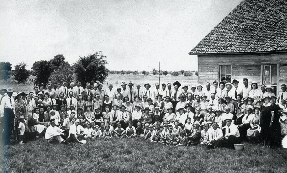 In 1935 one hundred and twenty five members of the Hog Jaw Primitive Baptist Church gathered for this photo. You may find your parents, grandparents or even yourself in this group courtesy of the Stephenville Historical Museum. . . . for more like this please see Texas Church History |