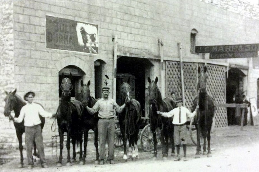 Three residents of Erath County with six horses in 1911 pictured in front of J.C. Marr and Son Livery Stable Photo: Stephenville Historical Museum . . . for more like this please see Texas Cowboy History |