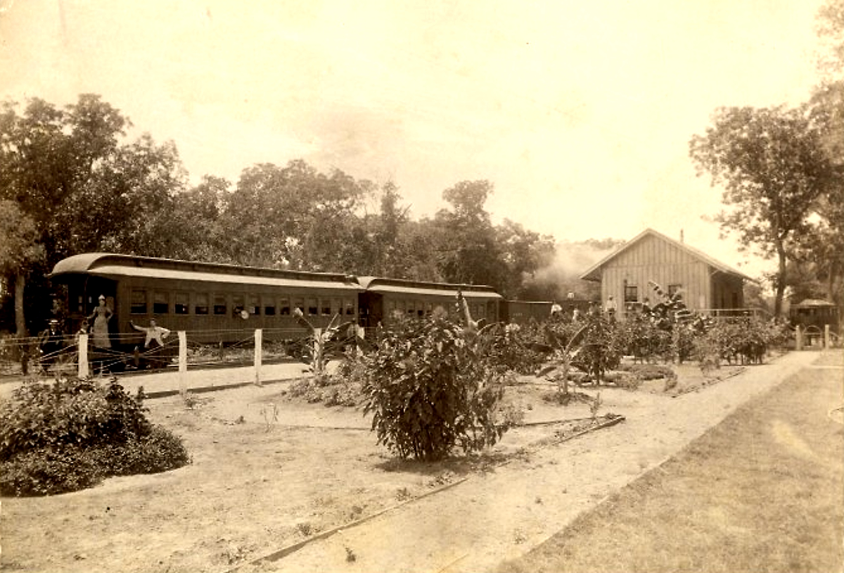 Falls Railroad Depot in 1892In 1892 three people stood at the back of a passenger car at the Austin and Northwest Railroad Depot in Marble Falls Texas |