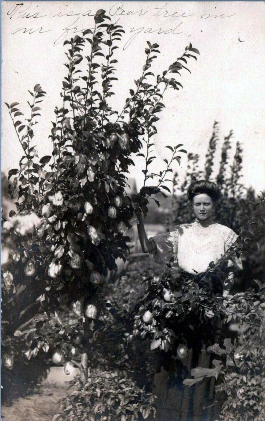 Woman with Pear Tree in 1908In 1908 an attractive and well dressed woman posed beside a productive pear tree in Coleman Texas |