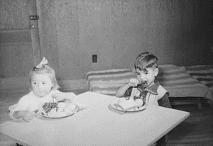Nursery school children at lunch, Robstown, Texa