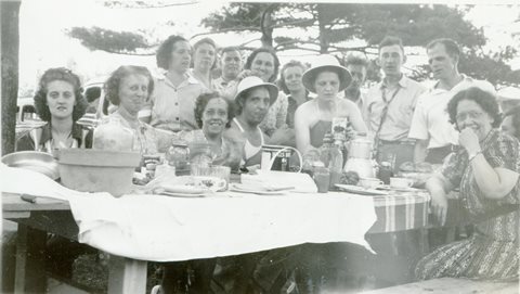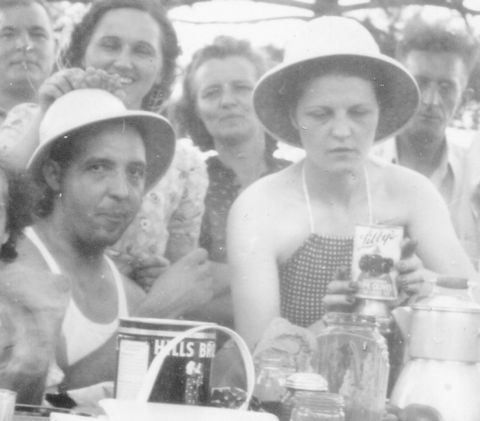 Here are clips from the picture above showing a close-up of Gordon and Verna, Vi and Peter, and Jess. Gordon and Vi look really tan.