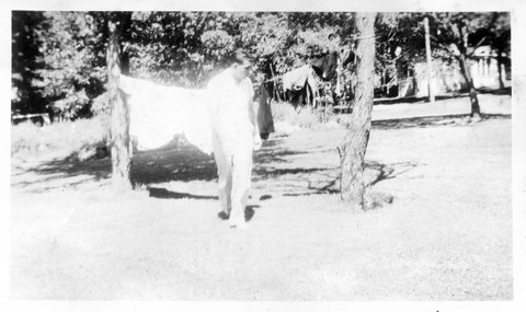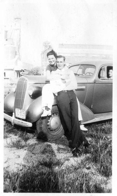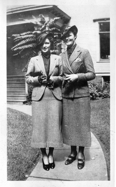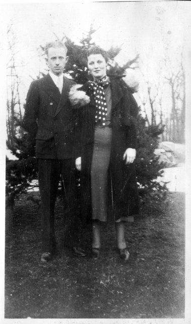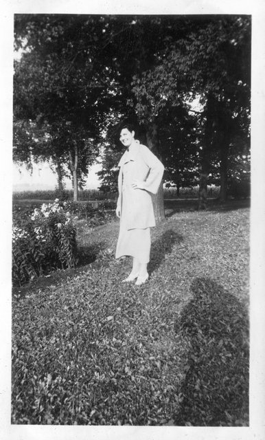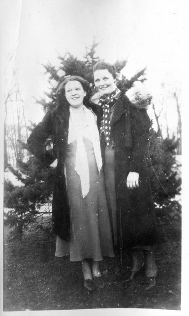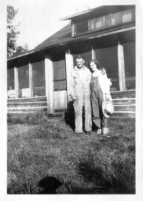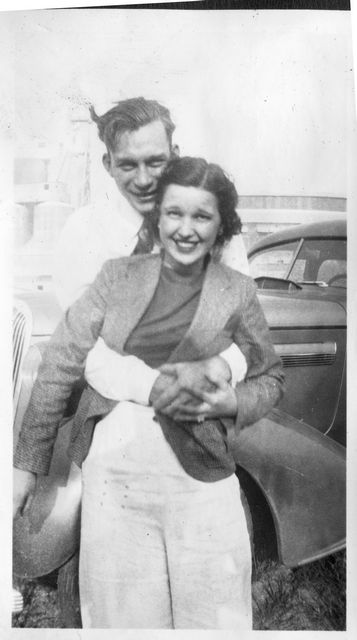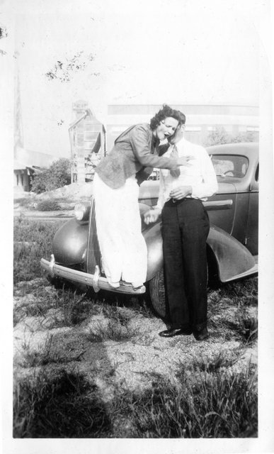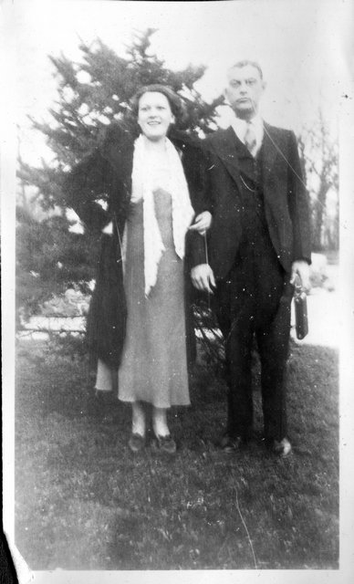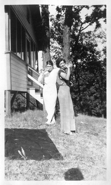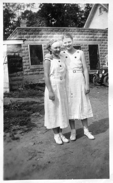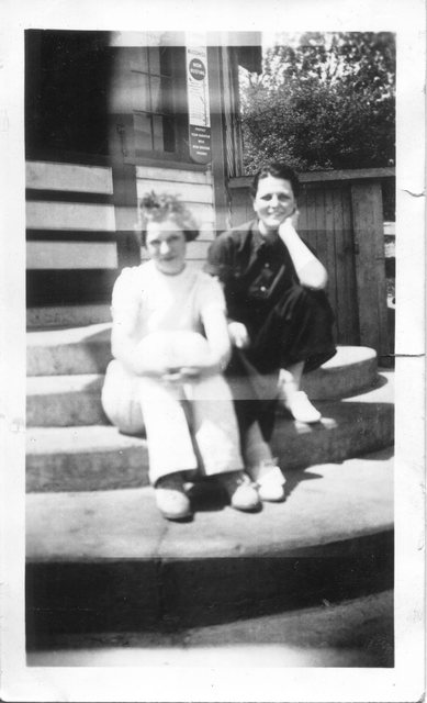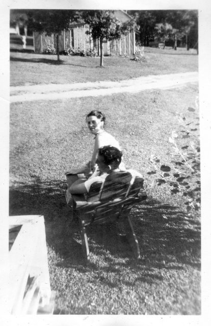 Here is Verna again with someone, who appeared in the next photo with someone else. This may be Clyde or Carl Staats, or Verna's brother Glen or Bill (or simply a friend).