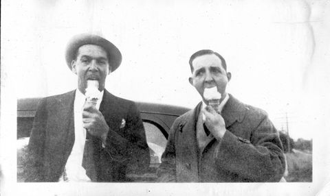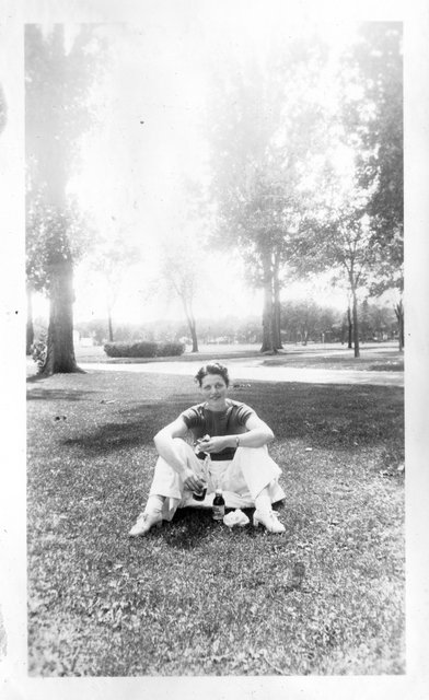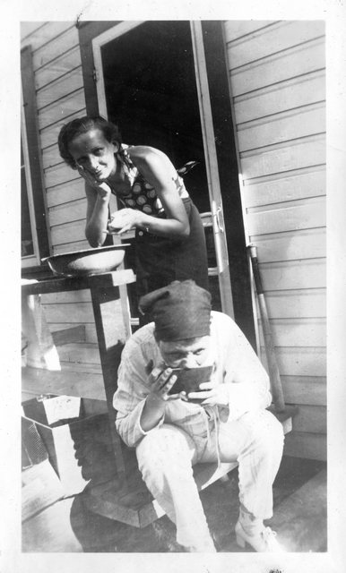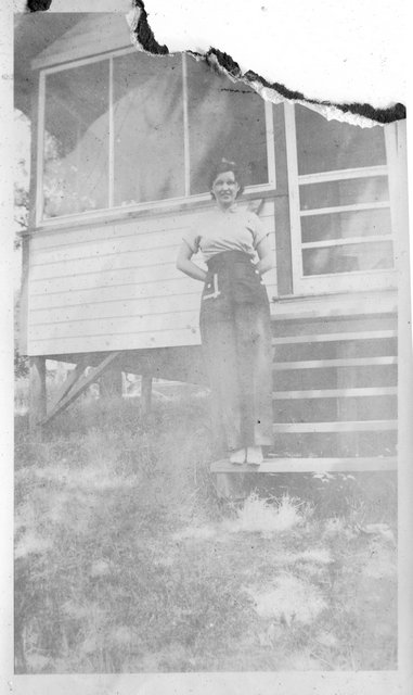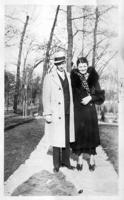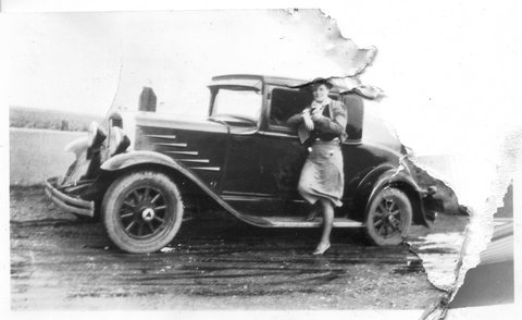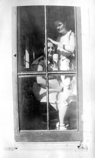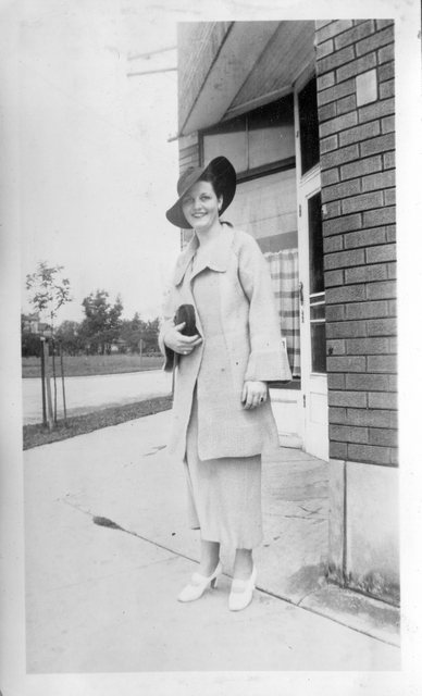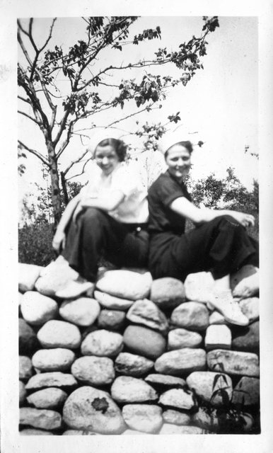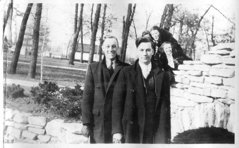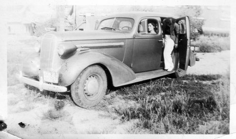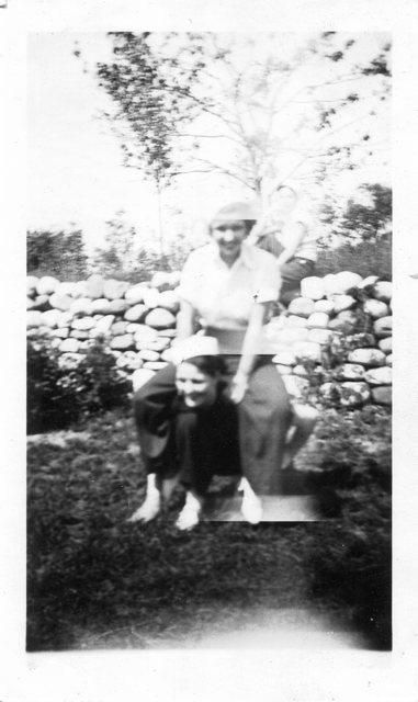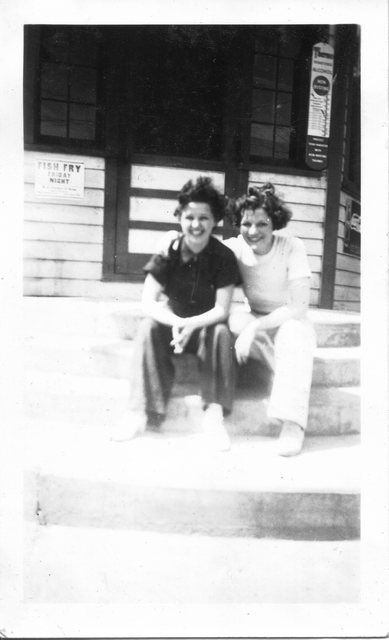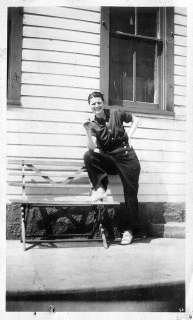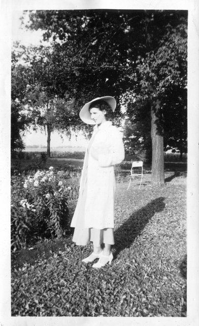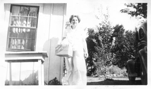 Here is Verna again with someone, who appeared in the next photo with someone else. This may be Clyde or Carl Staats, or Verna's brother Glen or Bill (or simply a friend).