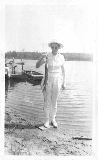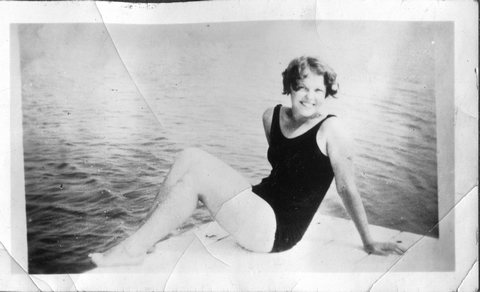 Several photos of Verna at the beach or lakeshore.