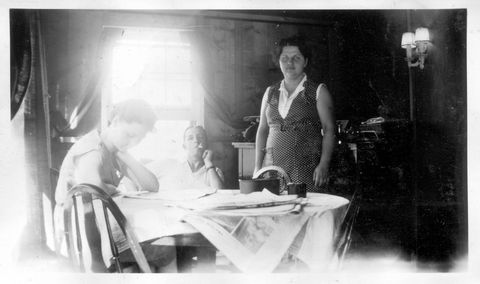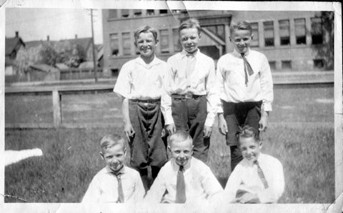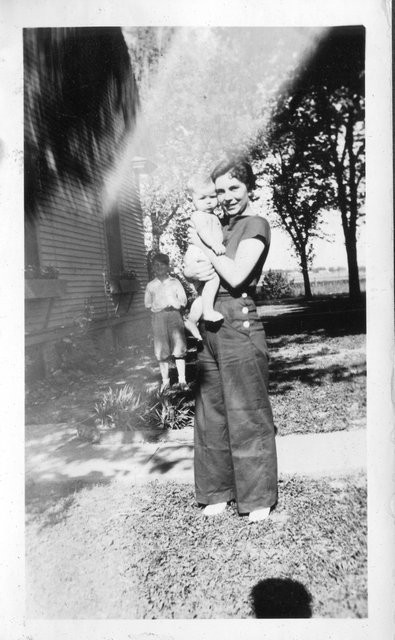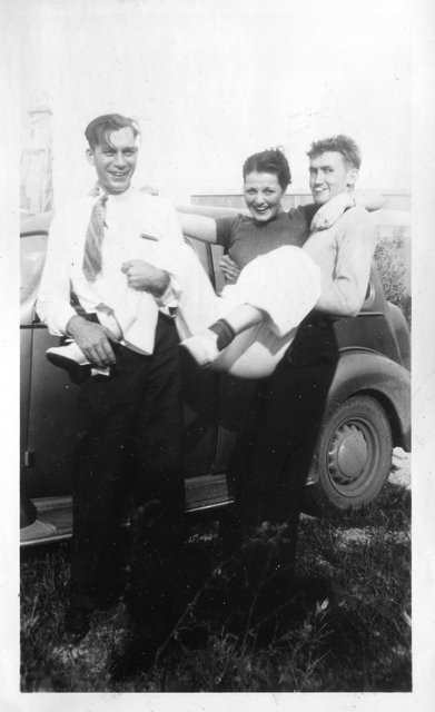The boy on the left holding her is in a couple other photos, so this might be her brother Glen or Bill, or maybe Gordon's brother Clyde or Carl.