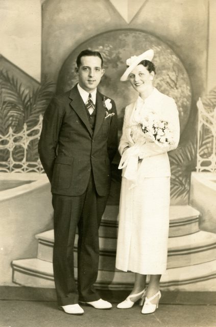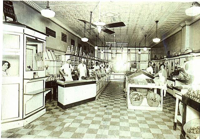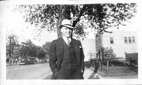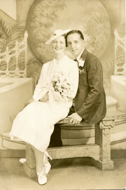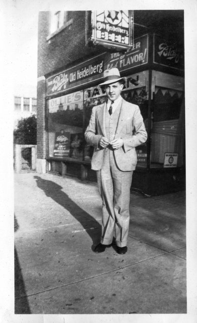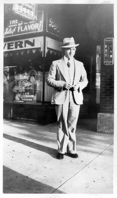 1920-30s - Gordon & Verna Staats Up until sometime in 2015 or later, I had really only seen one photo of my grandfather, Gordon Staats, Sr., taken as a group photo, where I think he's the second man on the left behind the counter, but it's pretty hard to tell. The only one we're sure of is that the first person is Peter Quinzi, his brother-in-law (who's also in the second picture). This was taken inside Buehler Brothers market on Genesee Street in downtown Waukegan, IL. Denny remembered that Rusty, their Springer Spaniel, who was stolen from their home on Lewis Ave found his way back to the back door of the Buehler's market one Sunday when my dad was their dressing a deer for some hunter.