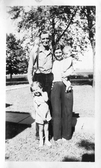 I'm assuming this is another picture of the Schuelke's, with l-to-r Thilda, Bill, Verna, Glen (?) and Elaine.