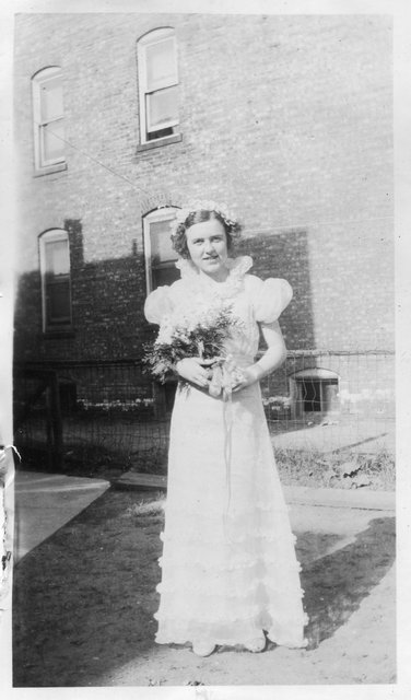 This is likely Viola on her wedding day (it was on the same page as one of the photos of Gordon in a suit and hat). The other two are clearly of Jess (glad at least one person other than Gordon and Verna is easy to spot).