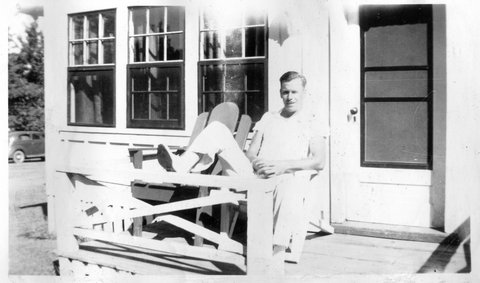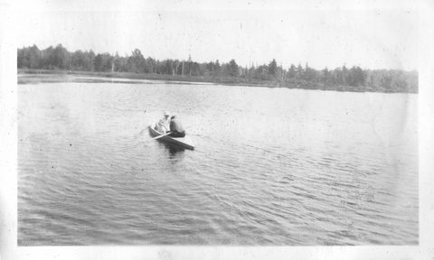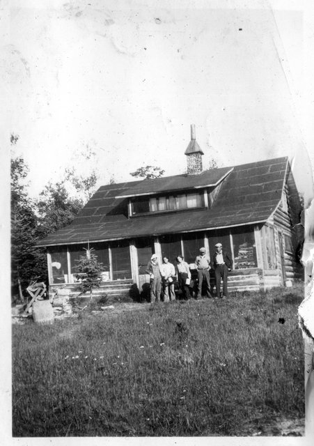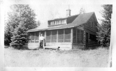 There were also several pictures of Jess and Clarence's log cabin on Mud Lake. He eventually left the cabin, bought the property on Bootjack and built the cabin Steve remembers on Portage Lake (in 1952). Denny thought he never owned it and the property was abandoned. The Mud Lake area is now reserved for deer hunters. Gordon is standing on the stoop in the horizontal photo.