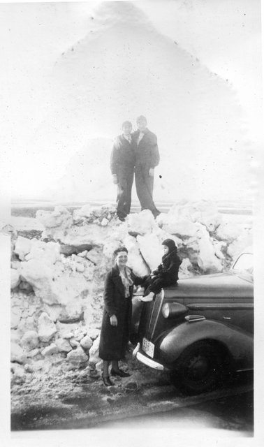 Here are some pictures of Verna with a car and a huge snowdrift. The first picture has Verna with a small boy, which is likely my dad, Gordon, placing the picture around 1942-3. Not sure if this was Wisconsin or the U.P.