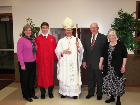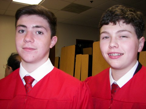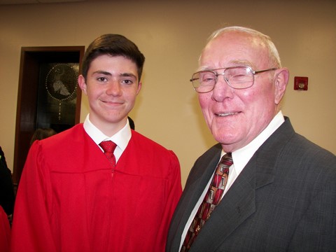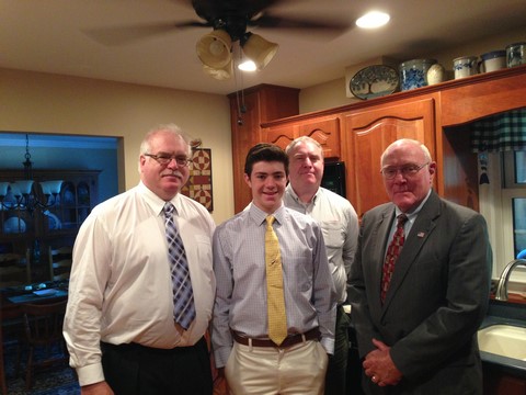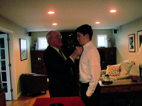 Andy was confirmed toward the end of March. Here is Grandpa Bill helping him get ready and tying his tie.