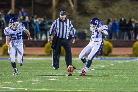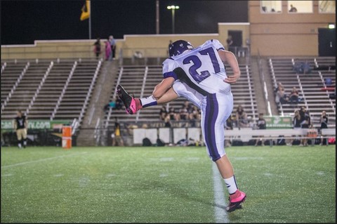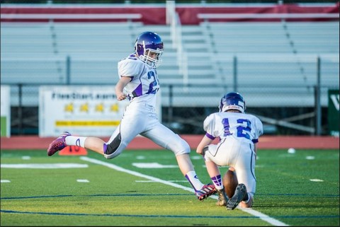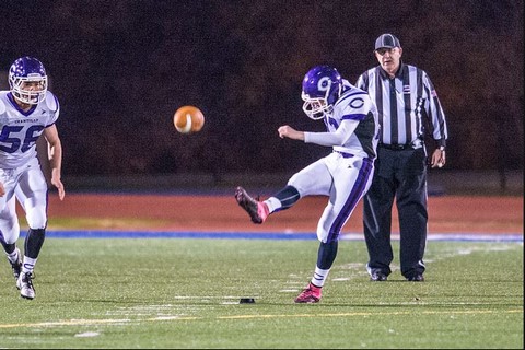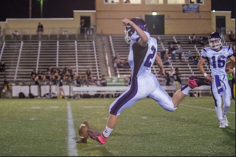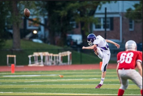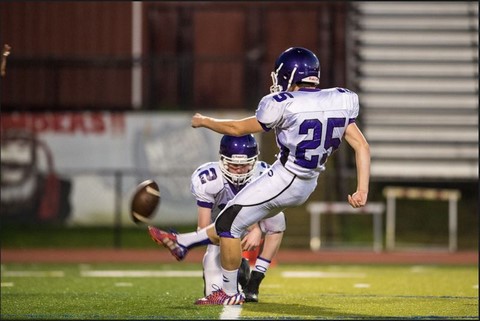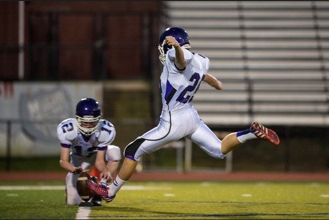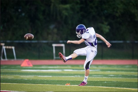 Here is Andy kicking-off after his team scored against Robinson HS. Unfortunately, they went on to lose the game.