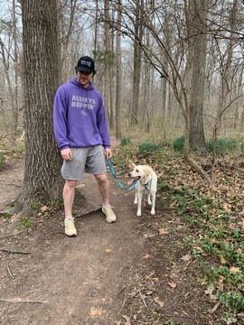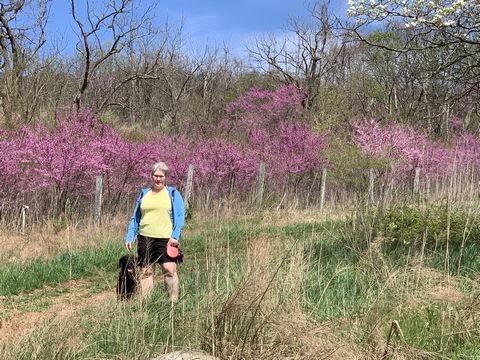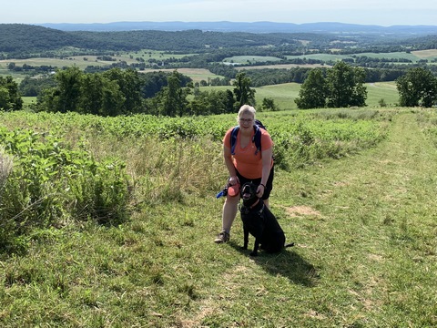 Tank loves to go for hikes. Here we are at Sky Meadows SP.