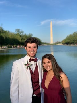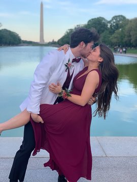 Andy went with Corinne to his senior prom.