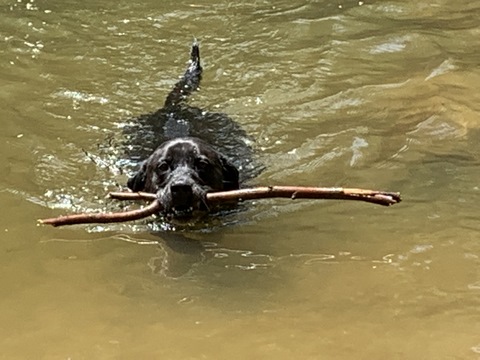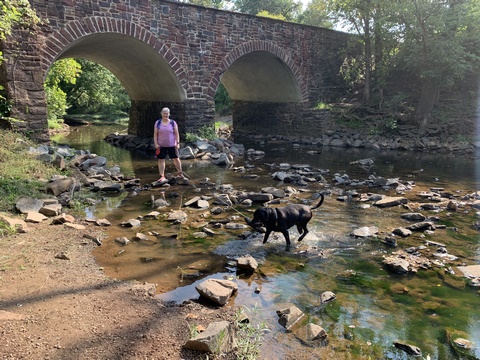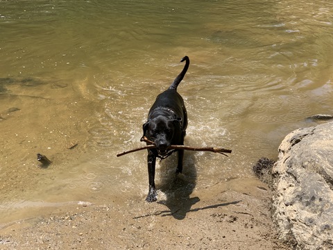 Tank had a little too much fun in Difficult Stream after a hike through Great Falls NP.