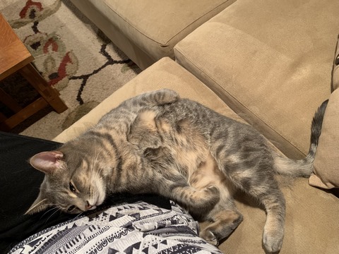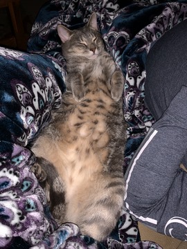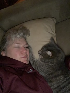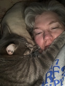 Monty often hides, but magically shows up whenever Nancy is ready for a nap.