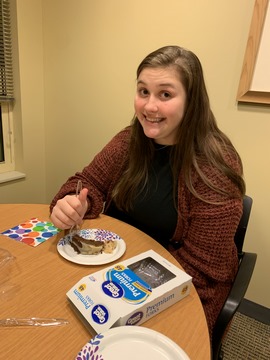 We headed up to Penn State to see Alexa on the weekend before her birthday. We headed to the Outback for dinner (not so good, unfortunately), then went to a volleyball game (good, they won). We then had chocolate cake with caramel sauce to celebrate.
