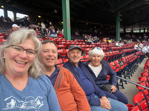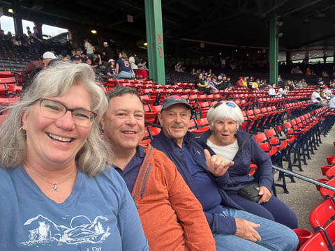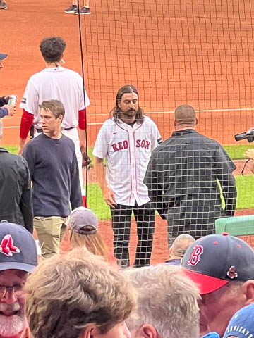 We didn't know who this was and a lot of younger people kept coming by to take excited selfies with him in the background, so we had to send a picture to the kids. They quickly reported back that it was Noah Kahan, a country singer, was there to throw out the ceremonial first pitch.