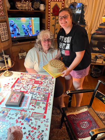 August 2024 (Part 02) Missouri Trip Nancy and Lexi headed to Missouri to visit with Grandpa Bill. Aunt Cathy and Andy joined them mid-week. Bill was finally ready to have the girls go through Dee's sewing room, which was a three-person, multi-day task. Andy avoided this chaos by heading out on a couple training runs (he wants to do a marathon in the fall) and helping power wash the fence. Looks like they also made a spice cake and finished the Central Dairy puzzle.