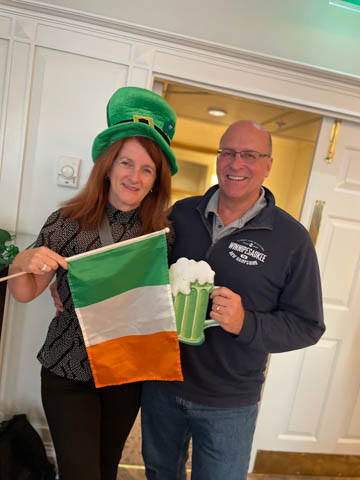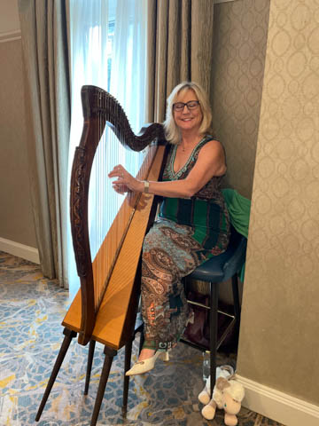 We made it back to the hotel with plenty of time to get ready and to the welcome dinner. We were greeted by a wonderful harpist and celebratory Champaign. The harpist took some time to discuss the traditions in Irish music and her harping. We also got a chance to meet our fellow adventurers and had the guides discuss the trip. They had each of us take a photo with the group we were traveling with. Here are some of the better ones.