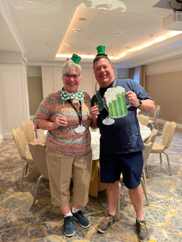 August 2024 (Part 05) Ireland Trip (Day Two): Howth and Dublin (Cead Mile Failte = one hundred thousand welcomes) )The next morning we got up reasonably early to check in with Adventures By Disney. We were delighted and amazed to see on of our guides was Gabby, who had been with us in Costa Rica on our first adventure back in June 2018 to celebrate Alexa's graduation from Chantilly HS. Our second guide was Leisha, a Dublin native. We had fun actually finding a picture of notoriously camera-shy Gabby in our favorites, as she was in the raft with us running some rapids. Once we checked in, we headed out to catch a train toward the coast where we were headed to the port of Howth (pronounced Hoath). We got there a bit under an hour before our scheduled tour, so we wandered around the port for a while. We headed out along the breakwater, laughing at the bids and a seal shadowing a small fishing boat